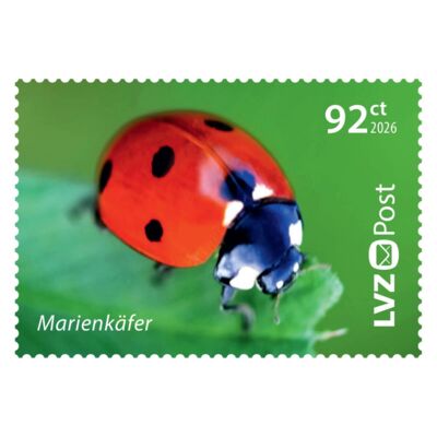 Nach einem langen Winter und viel Schnee in den letzten Wochen sehnen sich alle nach den ersten Sonnenstrahlen des Frühlings. Zarte Blätter an den Bäumen, erste Frühblüher und die steigenden Temperaturen kündigen den Jahreszeitenwechsel an. Die LVZ Post, der regionale Postdienstleister, läutet nun mit einer Sonderbriefmarke den Frühling ein. Es handelt sich in diesem Jahr um einen Zehnerbogen, Wertstufe 92 Cent mit einem Motiv. Die Briefmarke mit dem leuchtend roten Marienkäfer auf grünem Hintergrund ist ein echter frühlingshafter Hingucker.